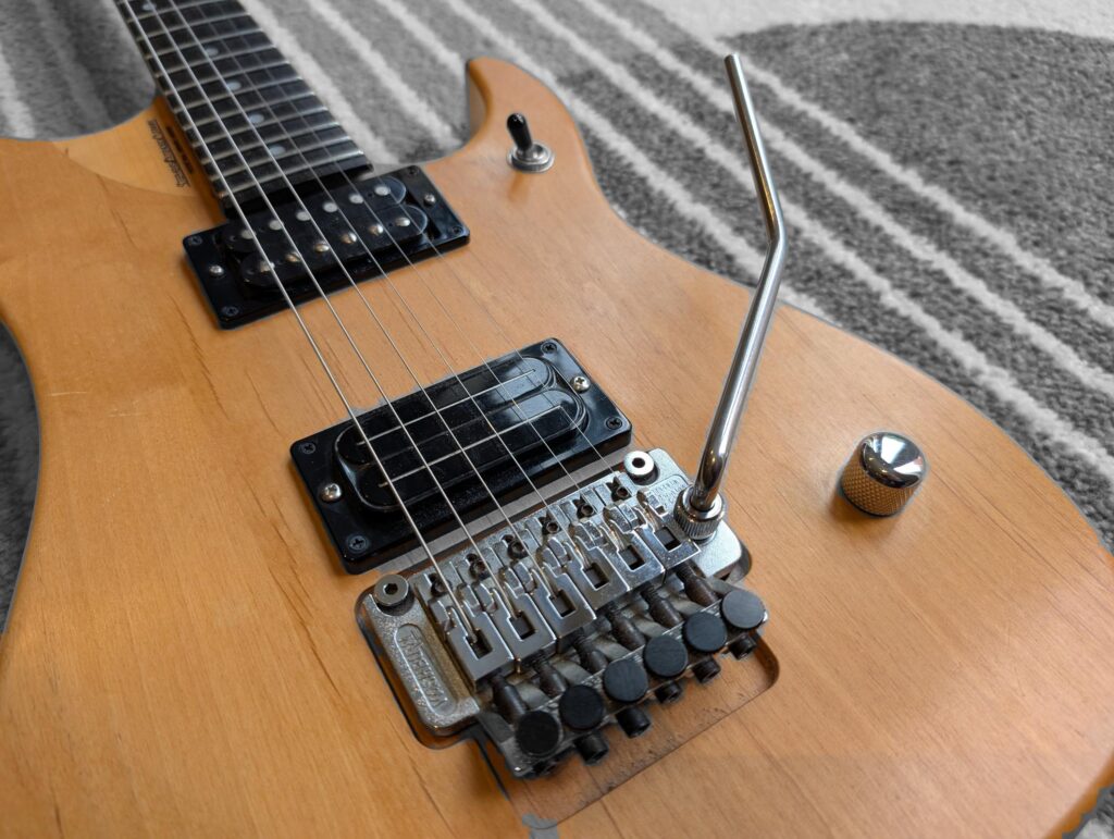 Floyd Rose passed away in early 2025 at age 77 so I’ll never get the chance to meet him. If I had gotten to meet him, I honestly don’t know whether I would hug him or strangle him! The tremolo system is absolutely brilliant when it’s all setup up and working correctly. You can abuse the whammy bar to your hearts content and it will stay in tune, but, whilst changing strings is a bit more complicated, if you ever want to change the gauge of the strings or drop tune the E string to D or lower, the balance of the entire system is thrown out and it can be a painful experience to balance it again.