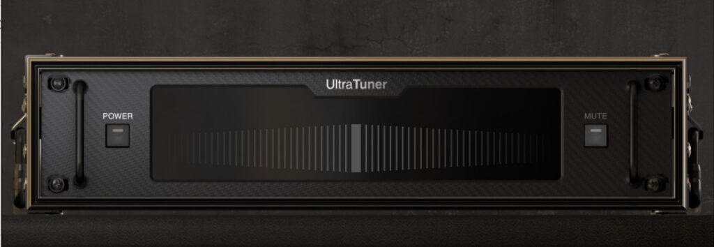 If you click on the tuning fork icon to the left, the program will open the guitar tuner feature on the window panel above the signal chain. To use it, the power button will need to be clicked to turn it on. Pluck a string and the tuner will automatically detect the note, the idea is to get the indicator as close to the middle as possible. It is a very accurate and sensitive tuner so I find getting plus or minus 3 bars from the centre is sufficient.